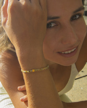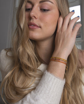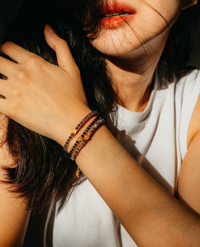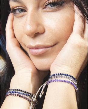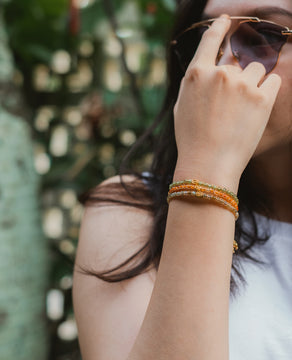 Our gemstone bracelets are crafted in Bali with macramé, featuring gold-plated beads, silver or gold thread, and Indonesian gemstones.